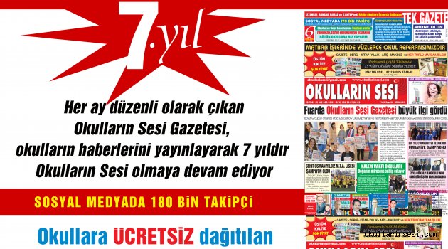 İstanbul, Ankara, G.Antep ve Bursa?daki bütün eğitim kurumlarına ÜCRETS?Z dağıtılan ilk ve tek gazete olma özelliğini taşıyan Okulların Sesi Gazetesi,7 yıldır yaptığı yayınlarla eğitim ve eğitimcinin güçlü sesi olmaya devam ediyor.