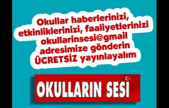 Haberlerinizi okullarinsesi@gmail.com mail adresimize gönderirseniz gazetimizde, internet sitemizde, facebook ve twitter sayfamızda yayınlayacağız...