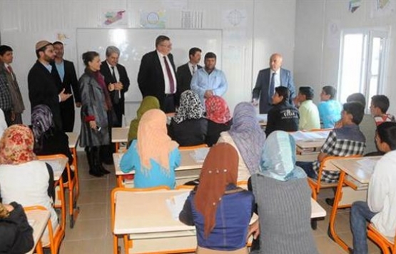 Mardin’in Midyat İlçesi’nde Irak ve Suriyeli sığınmacıların barındığı çadır kentteki okullarda AB heyeti ile birlikte incelemelerde bulunan Milli Eğitim Bakanlığı Müsteşar Yardımcısı Yusuf Büyük, mevcut okulları Suriyeli çocuklara da açacaklarını belirterek, “Okullarımızı öğleden sonraları, öğrencilerimize mani olmayacak şekilde, şehir merkezlerindeki Suriyeli vatandaşların çocuklarının eğitimine ayıracağız. Bu da onların okullaşma oranlarını artıracaktır” dedi. Büyük şöyle devam etti: